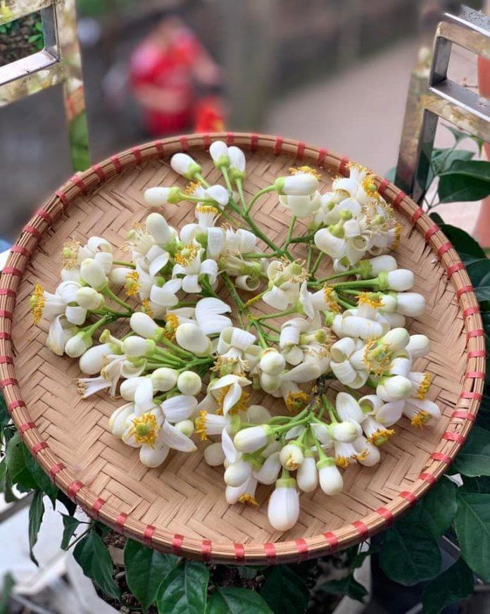 - Hoa bưởi hái về đem thả vào thau nước sạch. Rửa nhẹ nhàng từng bông rồi ngắt bỏ phần cuống.