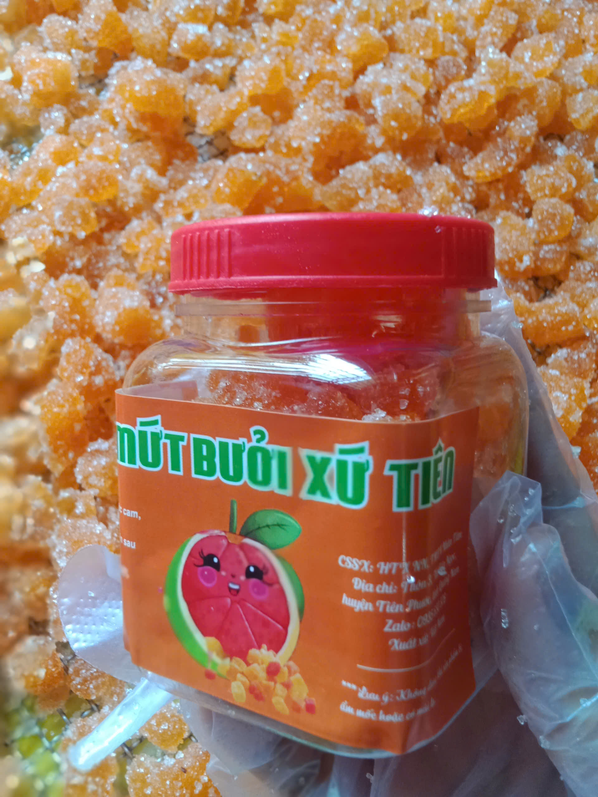 Mã sản phẩm: 05-nt Tình trạng: Còn Giá: 40.000 đ / 120G Lượt xem: 127 - + Thêm vào giỏ hàng Liên hệ tư vấn 0565 110 110 Mứt bưởi xứ Tiên Được chế biến từ 100 % cùi bưởi tươi tự nhiên, cung cấp lượng chất xơ dồi dào, giúp hỗ trợ quá trình tiêu hóa Bên canh đó, mứt bưởi còn được mix với nước cam tươi để tạo hương vị thơm ngon, và vị chua nhẹ cho mứt. Nước cam cung cấp lượng Vitamin C cho cơ thể Mứt bưởi xứ Tiên là một sản phẩm tuyệt vời cho các set quà tặng, khách du lịch Thich hợp và an toàn cho trẻ nhỏ, mẹ bầu Chi tiết sản phẩmĐánh giá của khách hàng Thành phần: Cùi bưởi, nước cam, đường kính Thành phần dinh dưỡng: (trong 100g) Protein: 0.85 g Carbohhydrate: 85.2 g Năng lượng: 344 Kcl Đường tổng: 85.2 g Hàm lượng xơ tổng: 0.83 g Hàm lượng chất béo: < 0,1 Sản phẩm đã thêm vào giỏ hàng Tiếp tục mua hàng Đến giỏ hàng Sản phẩm cùng nhóm 40.000 đ MỘC THANH TRÀ 30.000 đ BÁNH TRÁNG HƯƠNG QUẾ XỨ TIÊN 70.000 đ HẠT ƯƠI BAY RỪNG 110.000 đ Mứt bưởi xứ Tiên 650.000 đ MẬT ONG RỪNG 30.000 đ BÁNH TRÁNG HƯƠNG QUẾ XỨ TIÊN 1 DANH MỤC SẢN PHẨM Sản phẩm Nhân Tâm CO.OP TIN NỔI BẬT Câu chuyện sản phẩm Mộc Thanh Trà (Trà Hoa Bưởi) Cách làm đẹp da từ hoa bưởi, vừa giúp trắng mịn lại sáng hồng trông thấy Một số tác dụng của hoa bưởi ‘tuyệt hay’ trong làm đẹp và sức khỏe Tác dụng bất ngờ của hoa bưởi đối với cơ thể